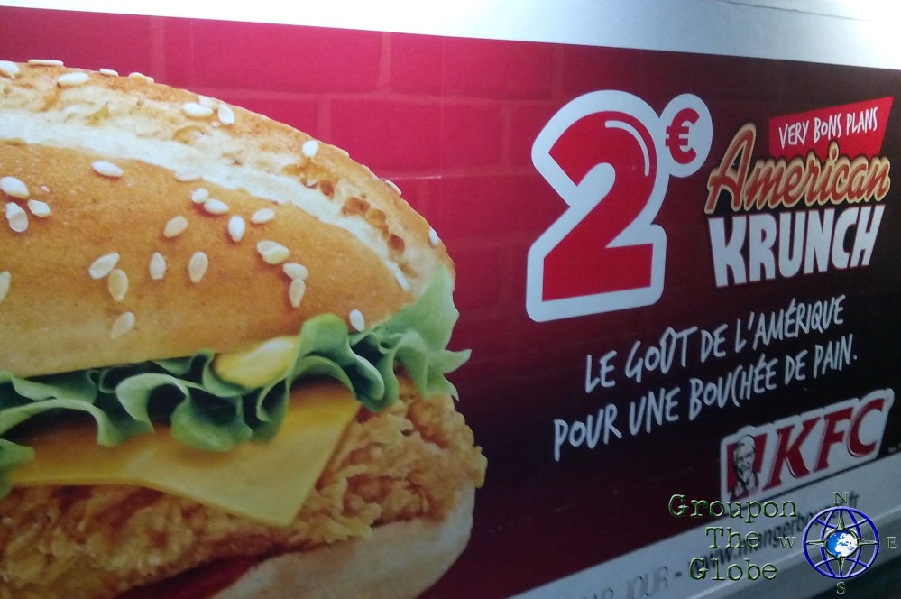 Finally, it was time to make our way back to the hotel and get a few hours of shut-eye before our 5am taxi ride to the airport for our flight to Rome, Italy. Along our journey, we saw a person carrying a baguette (a stereotype we noticed at least 10 times in 2 days), the exit to Disneyland Paris (which we considered visiting) and an advertisement for the KFC “American Krunch” sandwich. It’s quite interesting how many countries (correctly) advertise Americans as loving fried food & cheese!