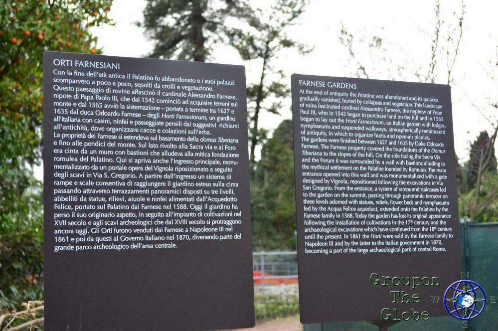 After exploring the ruins of the Colosseum, we made our way across the street to Palatine Hill (which is included in the price of your ticket). On the way to Palatine Hill, there were several vendors selling “one-of-a-kind” paintings. Although Joel & I didn’t fall for it, one of our travel buddies did and she ended up paying €20 ($46.44) for the painting. However, at the next cart over, another vendor was selling the EXACT same painting for €10 (11.61). Word to the wise: beware the street vendors and shop around before making a purchase – even if it’s only 5 feet away.