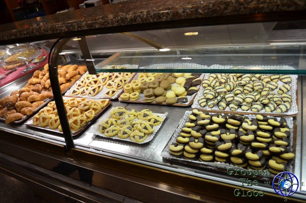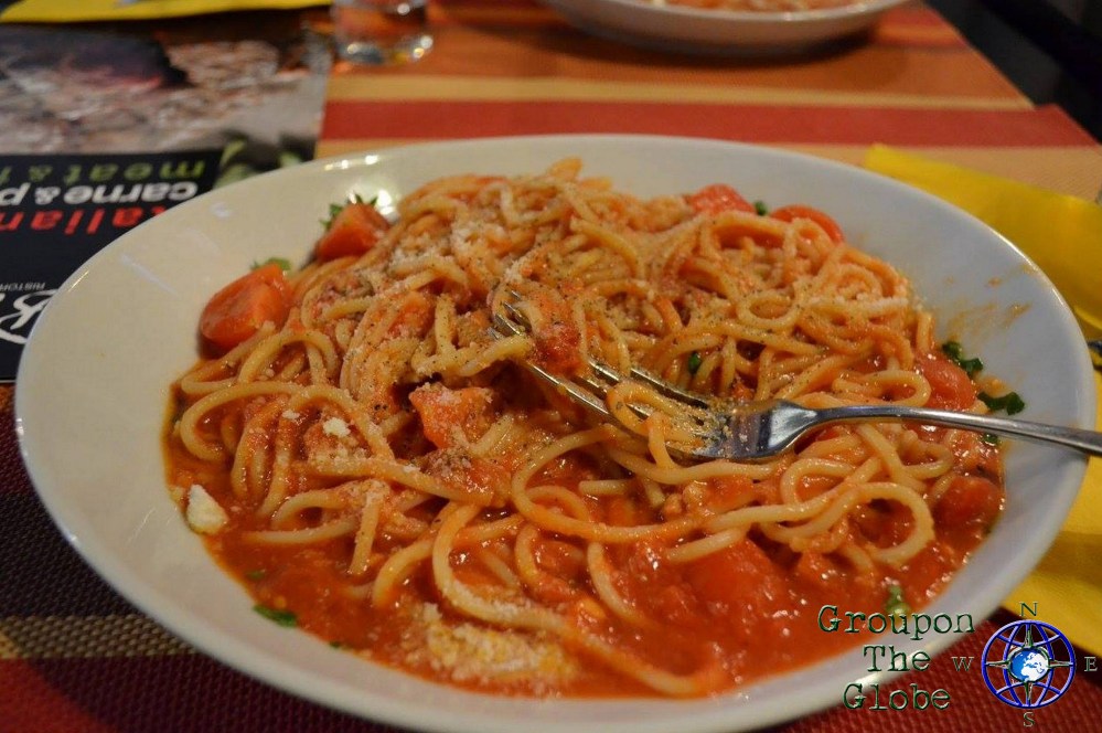 After exploring the Roman ruins for a few hours, it was time to eat again! For dinner, we devoured a delicious pasta meal with gelato and cookies for dessert. Even though London blew us away with breakfast, Rome was held its own when it came to lunch & dinner. At the restaurant, I ordered spaghetti with swordfish in a red sauce… it was phenomenal! For dessert, Joel & I had tiramisu and chocolate gelato – respectively – with some savory cookies for the walk home.