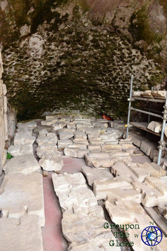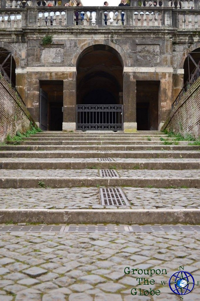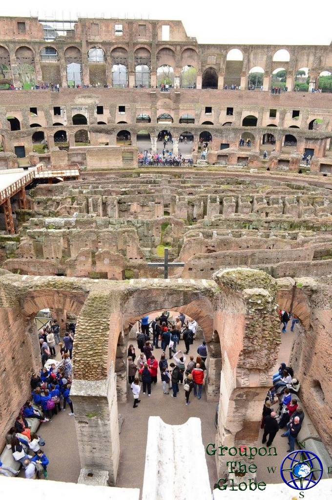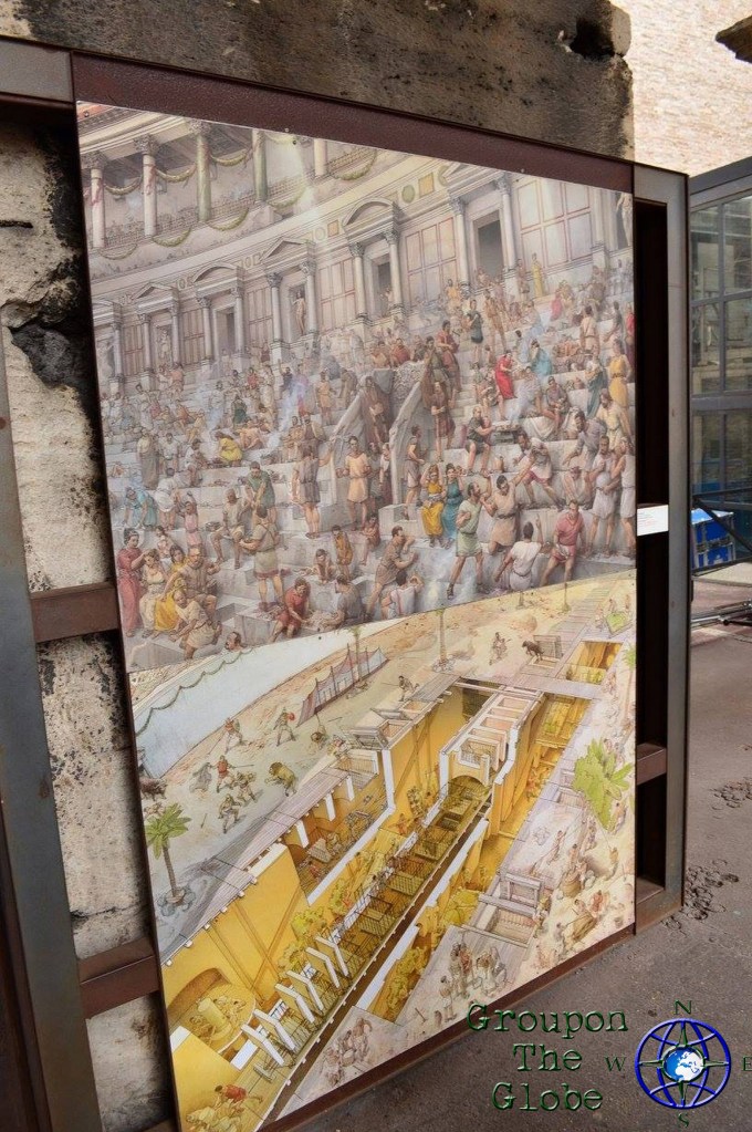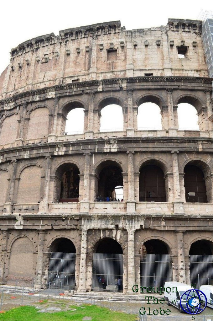 About 15 minutes later, we arrived at the breathtaking Colosseum (also known as the Flavian Amphitheater). Built of concrete and sand, it is the largest amphitheater ever built. It is estimated the Colosseum could hold between 50,000 and 80,000 spectators, with an average audience of around 65,000. When in use, it was used for gladiatorial contests and public spectacles such as mock sea battles, animal hunts, executions, re-enactments of famous battles and dramas based on classical mythology. Luckily, there weren’t 65,000 people in line when we visited, so the wait was about 10-15 minutes from purchasing the tickets to entry.