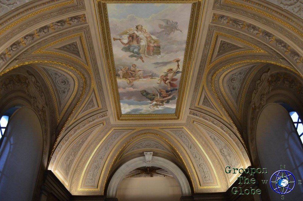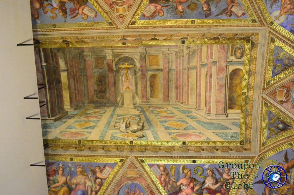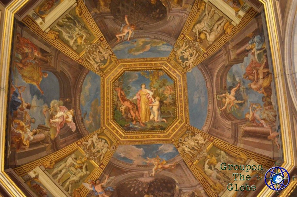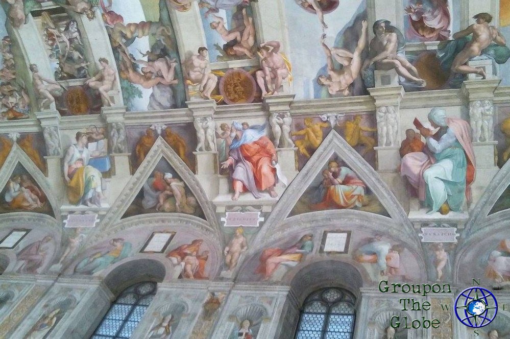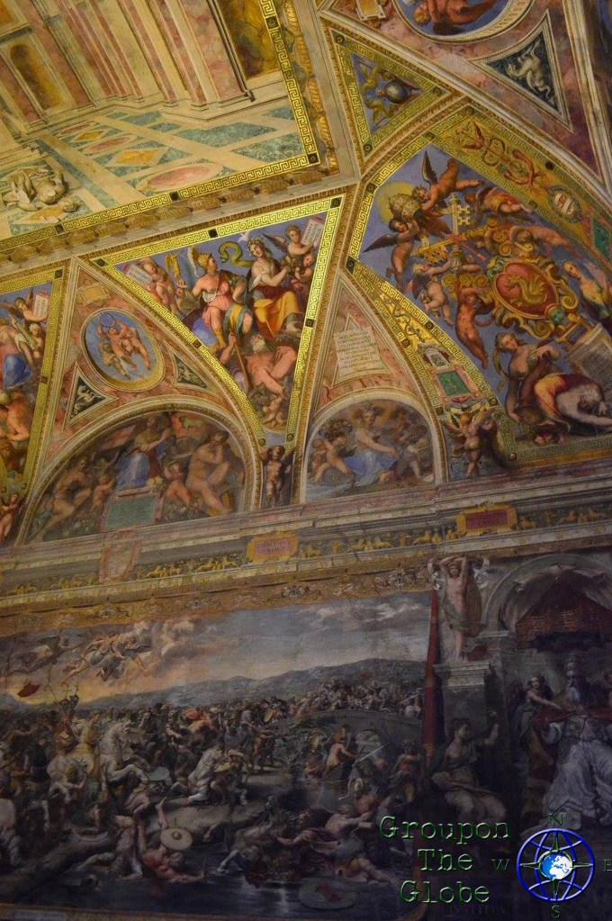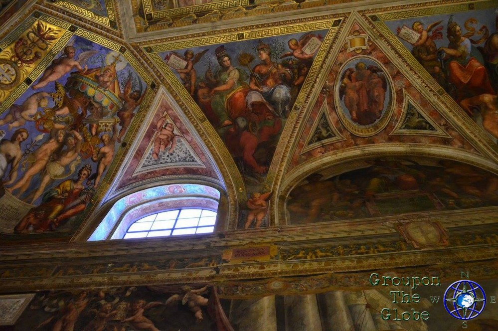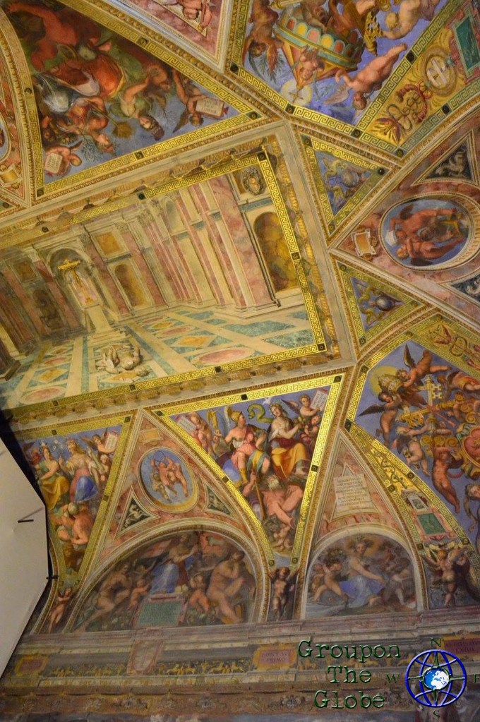 Although visitors are allowed to take photos throughout the Vatican Museums, no photos (or hats) are allowed in the actual Sistine Chapel… but that didn’t stop me! As we sat along one of the benches that lined the walls, I slyly pulled my phone out of my pocket, blindly put it on the camera setting and snapped a couple of photos of the ceiling (my phone doesn’t have a flash, so I didn’t have to worry about that). However, their eagle-eyed security guards are trained to notice visitors taking pictures of the ceiling and they quickly yelled at me to put my phone away… but not before I was able to grab a few pics of the Sistine Chapel (including the famous Creation of Adam). I fell more in love with my phone at that moment, plus I saved $25 on a mass produced souvenir!